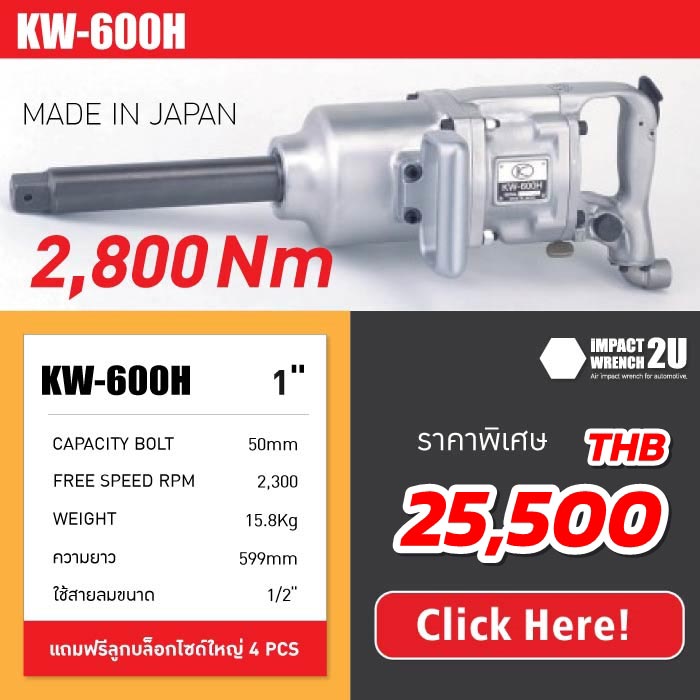 - ใช้งานร่วมกับลูกบล็อกขนาด 4 หุล (1/2")